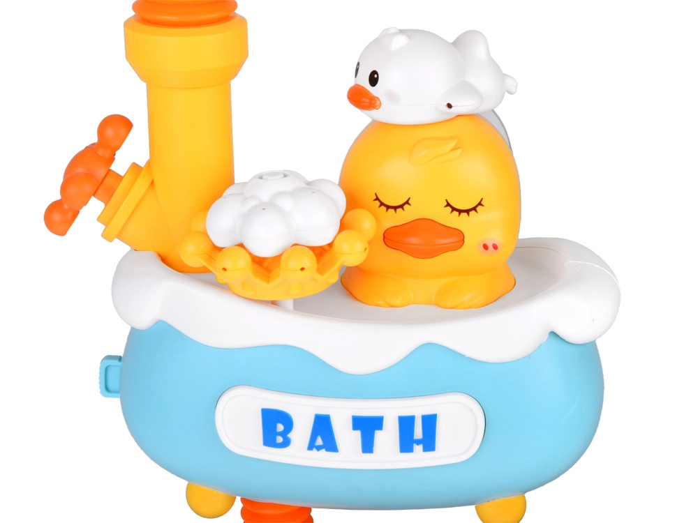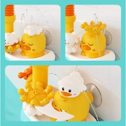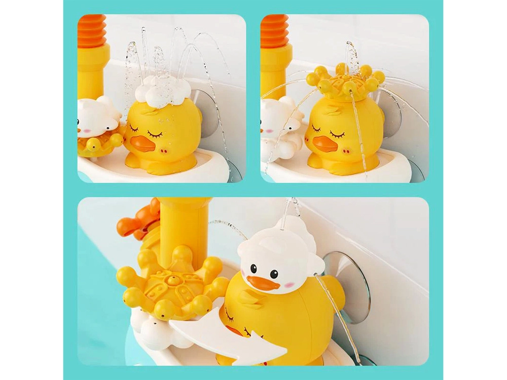- Interchangeable nozzles (duck, cloud, crown) for varied water effects