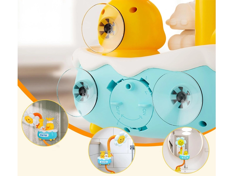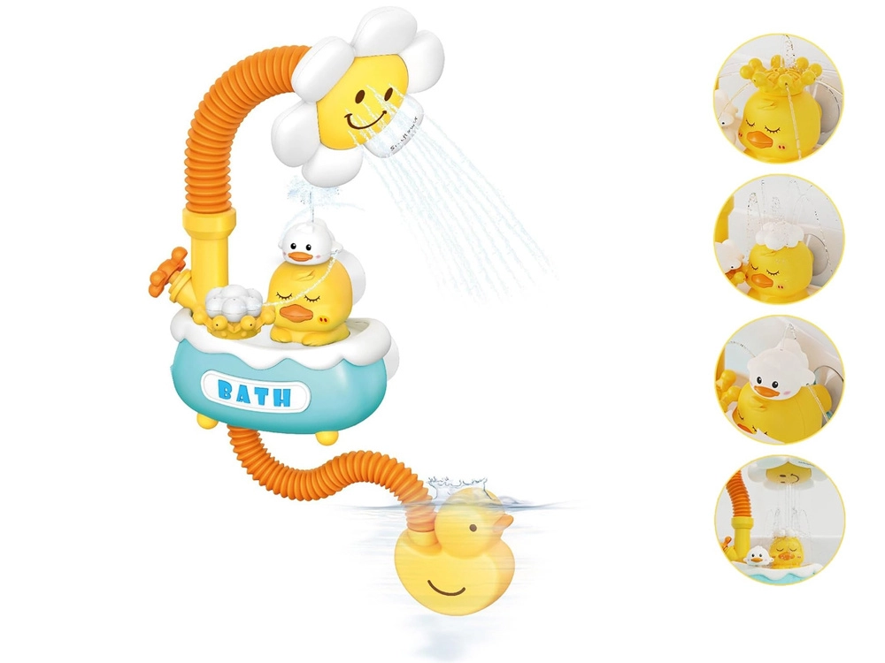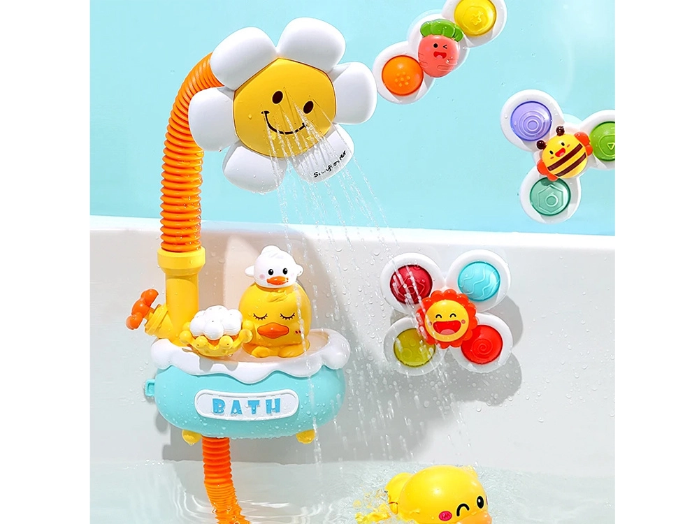 This cheerful flower shower set for kids encourages a positive relationship with water and makes every bath more enjoyable. Submerge the duck-shaped pump in water, switch it on, and watch a gentle water spray flow from the smiling flower. Ideal for children from about 3 years old, its safe stream and easy setup make it a great choice for any bathroom.