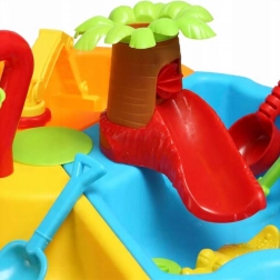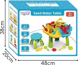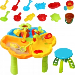 The 2-in-1 play table for water and sand is ideal for the garden, balcony, terrace, and kids’ room. The three-part basins allow simultaneous experiments with water, sand, and accessories, so children can build, pour, sift, and explore different textures. The ergonomic chair ensures comfort and stability during play.