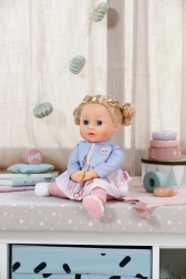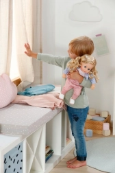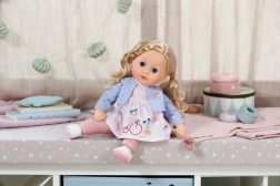 The package includes a complete clothing set: a delicate dress with a light jacket, comfy leggings, and shoes. Thanks to movable limbs, the doll is easy to sit and dress. Playing with the doll develops fine motor skills, empathy, and imagination – an ideal first doll for little ones.