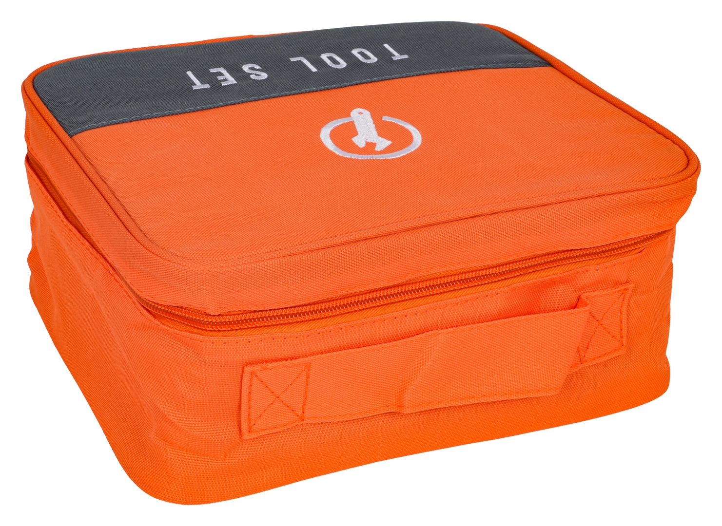 Durable fabric bag with a zipper and reinforced handle keeps the tools organized. Ideal for storing and carrying the entire set.