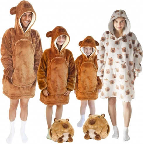 The practical large hood with animal ears and spacious front pocket warm hands and stash small treasures. Thanks to the oversized fit, it’s comfy and non-restrictive — ideal for couch time, camping, and chilly evenings on the terrace.