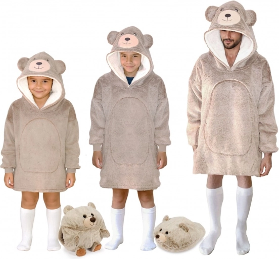 Thoughtful details delight: a large bear hood with ears, an oversized kangaroo pocket to warm hands and store small items, durable materials, and easy care — just wash at 30 °C. It’s also great for outdoor lounging, camping, or cooler rooms.