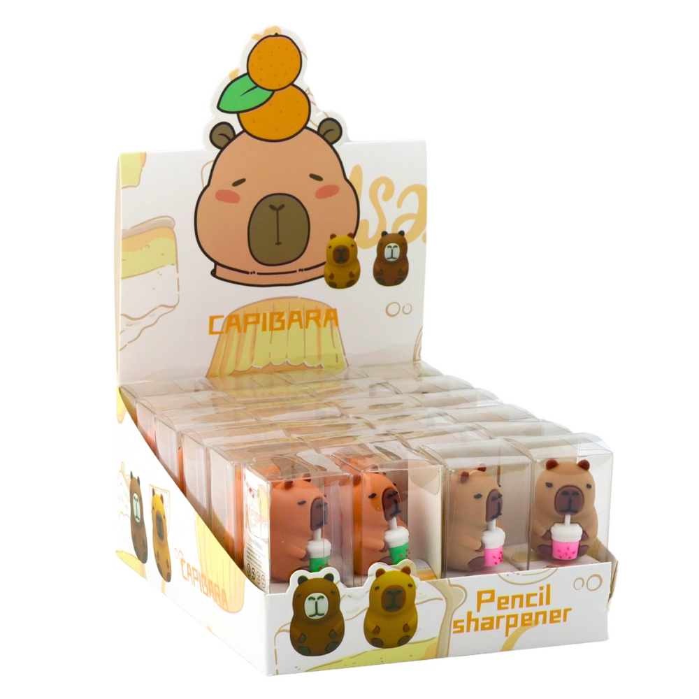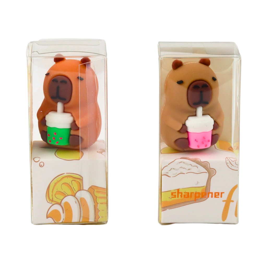 A cute capybara-shaped sharpener makes everyday writing at home, school, or the office more enjoyable. Its compact size fits in a pencil case or on a desk, and its look will delight both kids and adults. Made from quality plastic for long life and comfortable use. Great as a practical school aid, an original gift, and a stylish desk decoration.