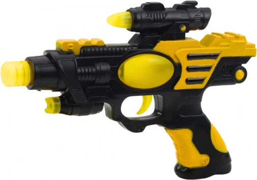 A stylish space blaster for young adventurers delivers light and sound effects at the pull of the trigger. The lightweight, ergonomic design fits perfectly in small hands, while the black–yellow look feels futuristic and invites creative play indoors and outdoors.