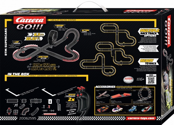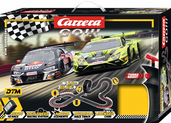 Carrera GO slot car track DTM Supercars 6.3 m with Audi R8 LMS and Lamborghini Huracán