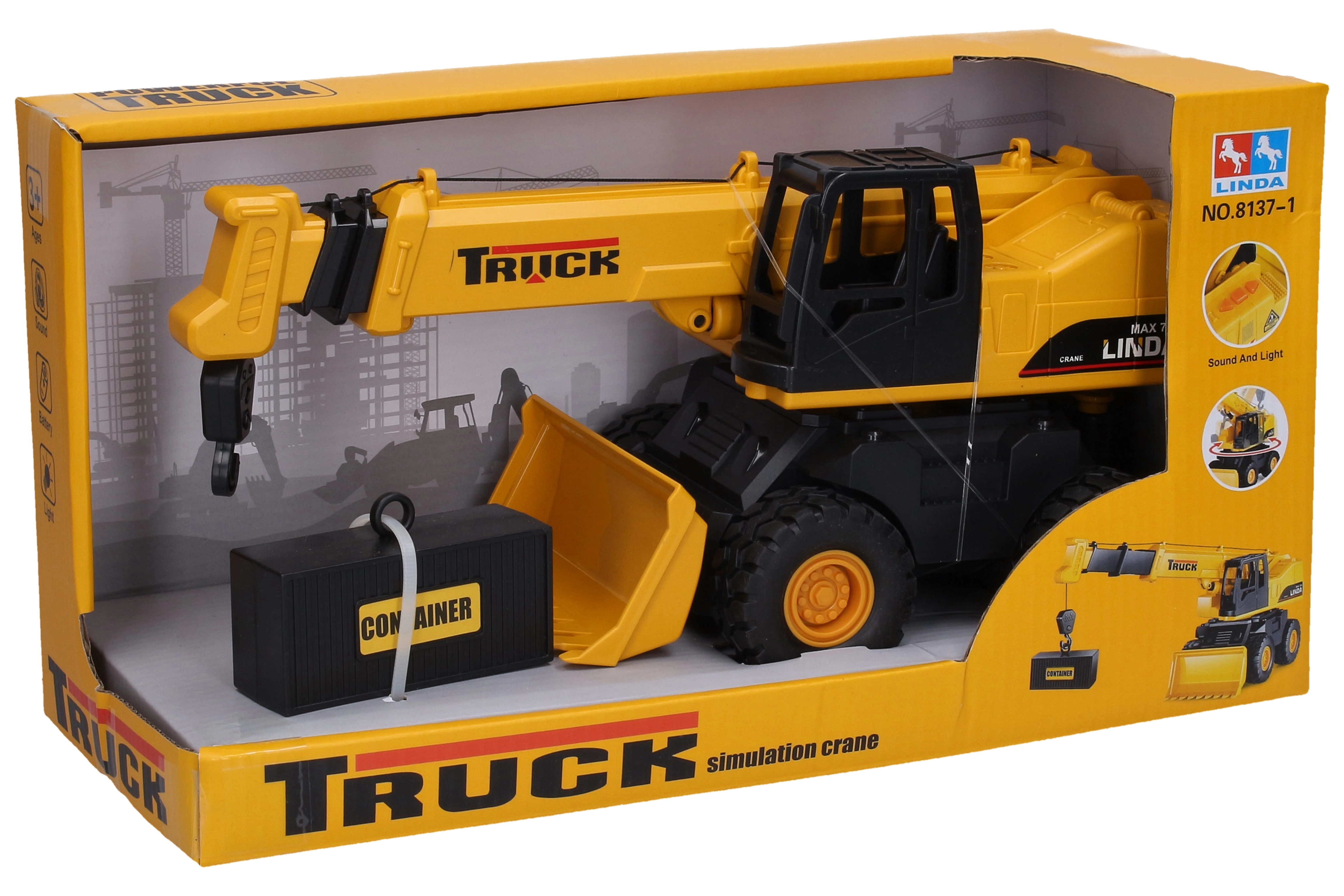 A fun construction crane for young builders featuring a friction drive, sound effects, and a practical container for realistic play. Compact dimensions and batteries included make it an ideal gift.
