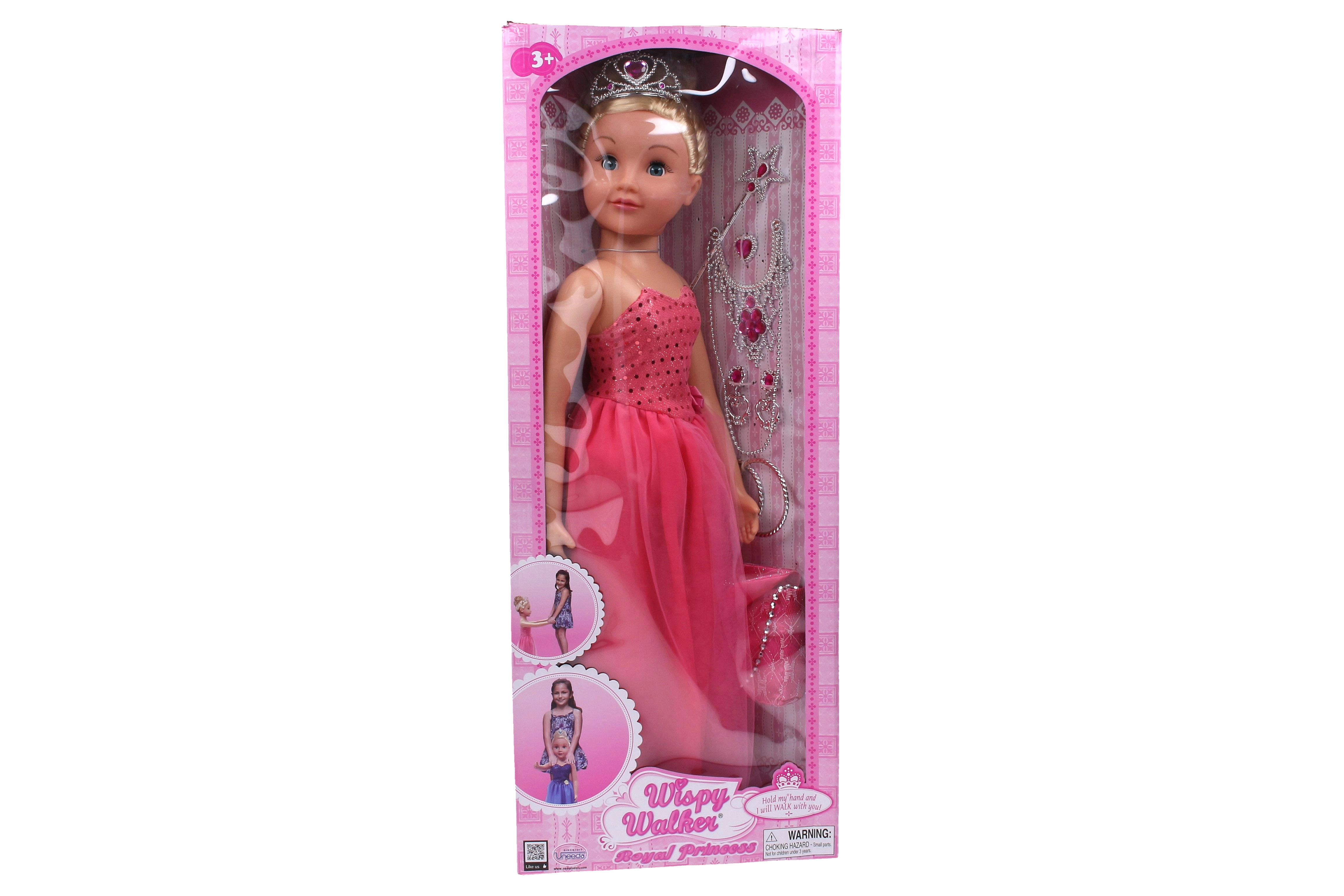An enchanting walking doll in the role of a princess will delight every little fashionista. With a height of 70 cm, she looks realistic, has sleeping eyes, and the package includes princess jewelry for even more fun playtime.