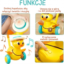 The WOOPIE duck on a guiding stick is an ideal toy for those first indoor walks. As it moves, it wobbles cutely, flaps its wings, and, with its light and sound effects, keeps your child engaged. Intuitive buttons on the body trigger melodies and light effects that encourage more steps.