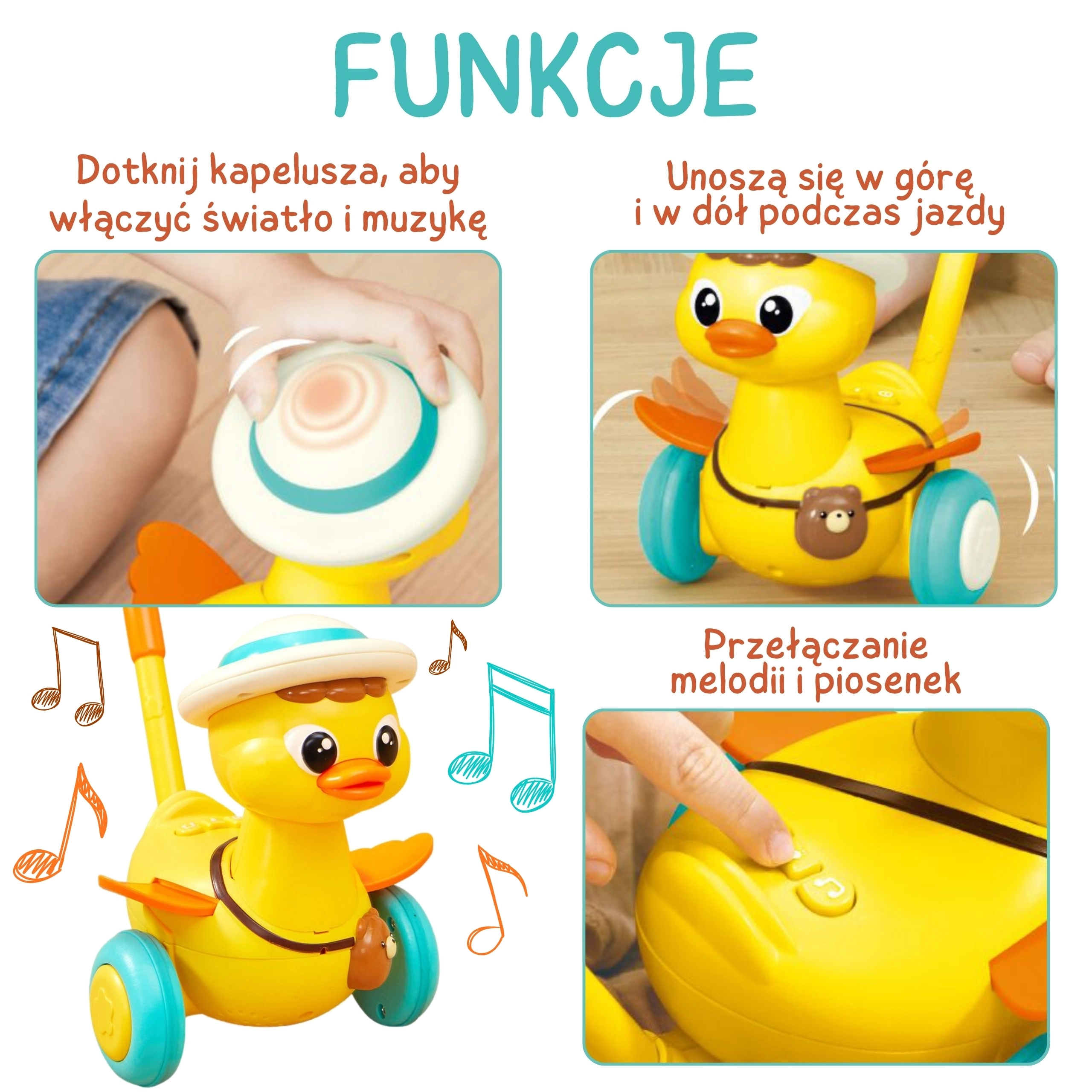 The adorable duck on a stick from WOOPIE turns those first steps into a fun game. As it moves, it flaps its little wings, lights up, and plays cheerful melodies. Thanks to its lightweight design, stable wide wheels, and easy button controls, kids will love it right away. A great companion for developing motor skills and independence from 18 months.