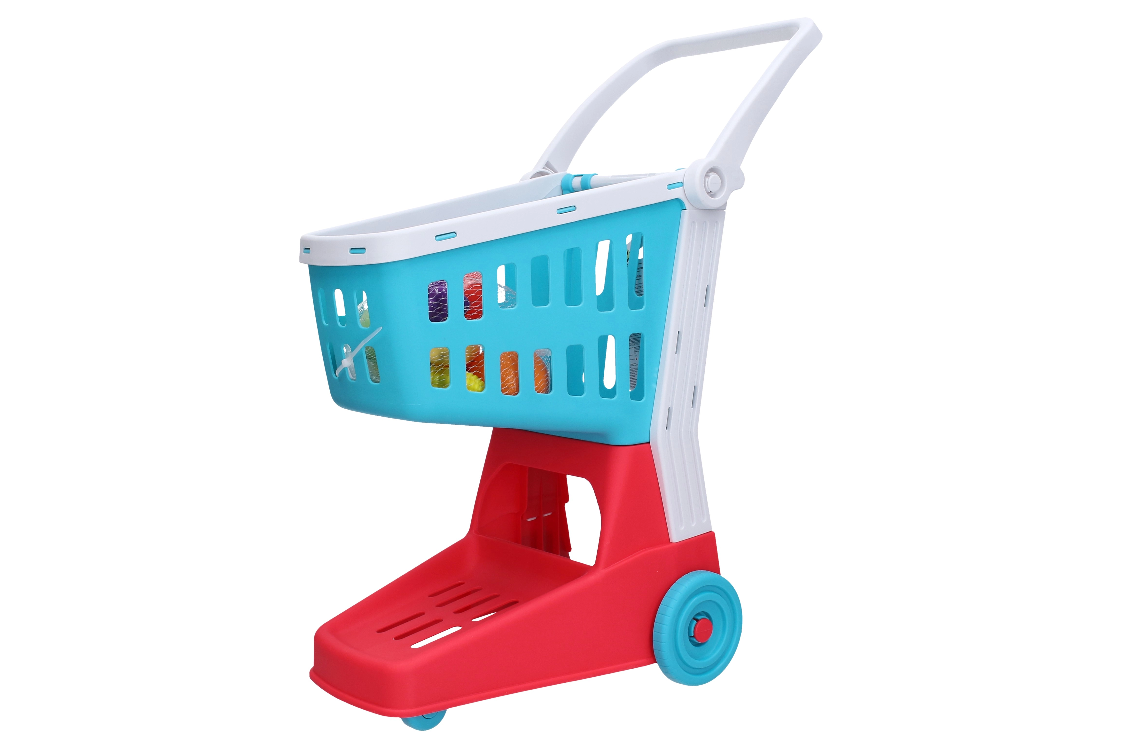 Give kids hours of fun playing shop with the PlayGo shopping cart with groceries set. The colorful cart with handle and wheels is lightweight, easy to steer, and packed with realistic accessories. It supports imagination, social skills, and fine motor skills.