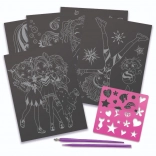 - 5 scratch-off boards, 2 scratch tools, 21 stencils, guide and Isadora’s story