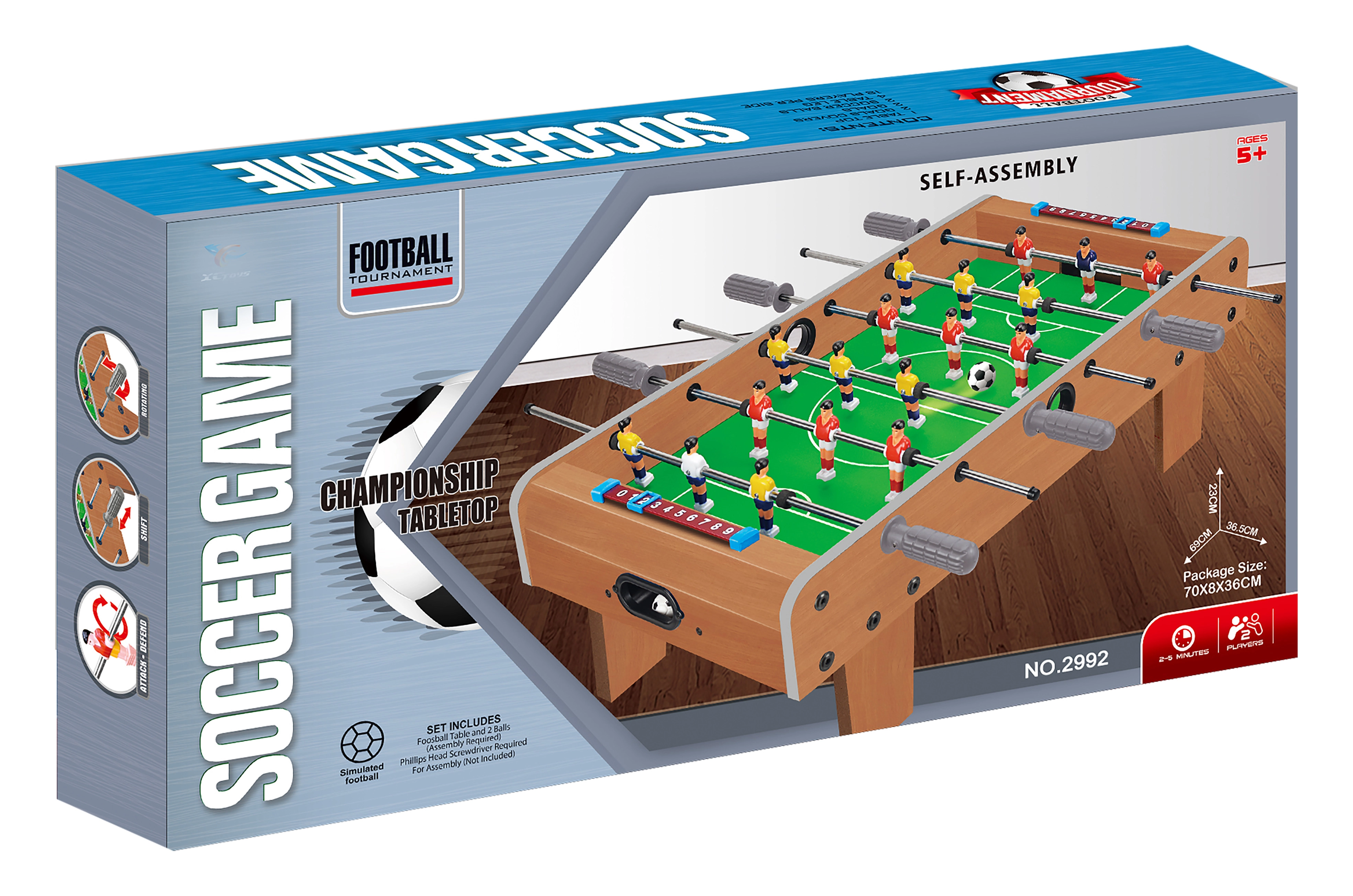 Enjoy thrilling matches at home with a compact table football set measuring 69 × 36.5 × 23 cm. Ideal for families and friends, it offers fast-paced fun and easy assembly. The package includes a table and 2 balls. Assembly is simple; you only need a Phillips screwdriver (not included).