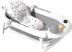 A practical and safe baby bathtub that makes every bath easier. Thanks to the integrated electronic thermometer, you’ll have the water temperature under control in real time. The foldable design saves space, non-slip feet ensure stability, and the soft foam recliner provides comfortable support even for the smallest babies.