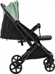 The lightweight and agile FreeON Tao sports stroller in an elegant green color is ideal for everyday outings. It offers a load capacity up to 22 kg, a reclining backrest with mesh for better airflow, an adjustable canopy with peek window, and 5-point safety harness. Thanks to the spring-suspended wheels and rear axle brake, it is easy to handle even in the city.