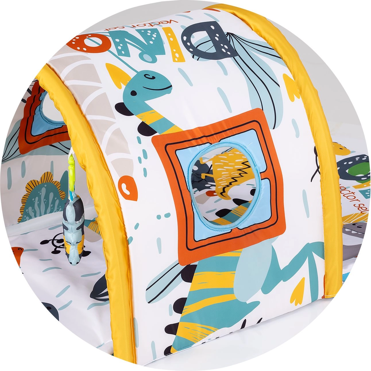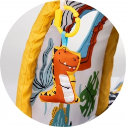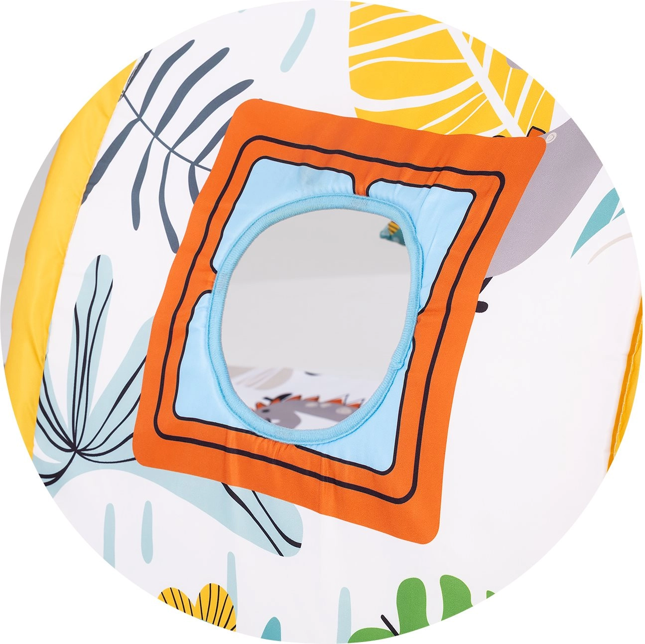 Thanks to its safe and comfortable design, the mat offers a pleasant place for tummy time and back play. The windows and details on the tunnel invite peeking and hide-and-seek, which develop curiosity and imagination. Colorful elements and textures provide rich stimuli for sensory development and early social interactions with parents.