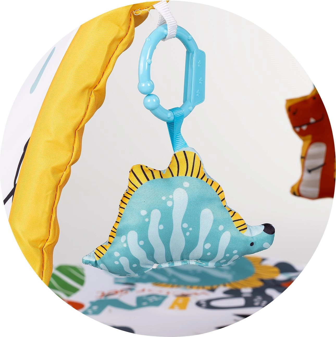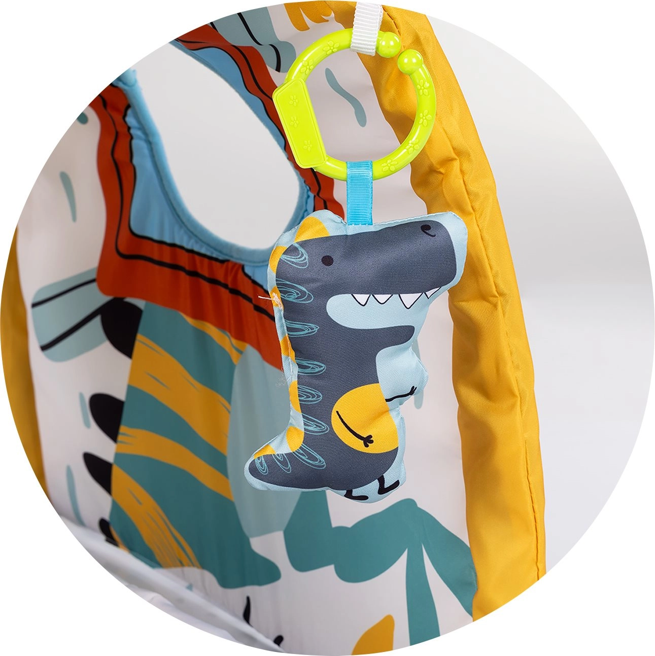 The padded mat with an arch and hanging toys motivates your baby to reach and grasp, strengthening hand–eye coordination.