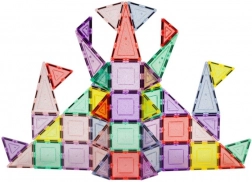 This sparkling magnetic building set in soft pastel shades turns every idea into a radiant creation—from castles and pyramids to imaginative fantasy worlds. The transparent plastic pieces with glitter let light shine through beautifully, making every build look vivid and captivating.
