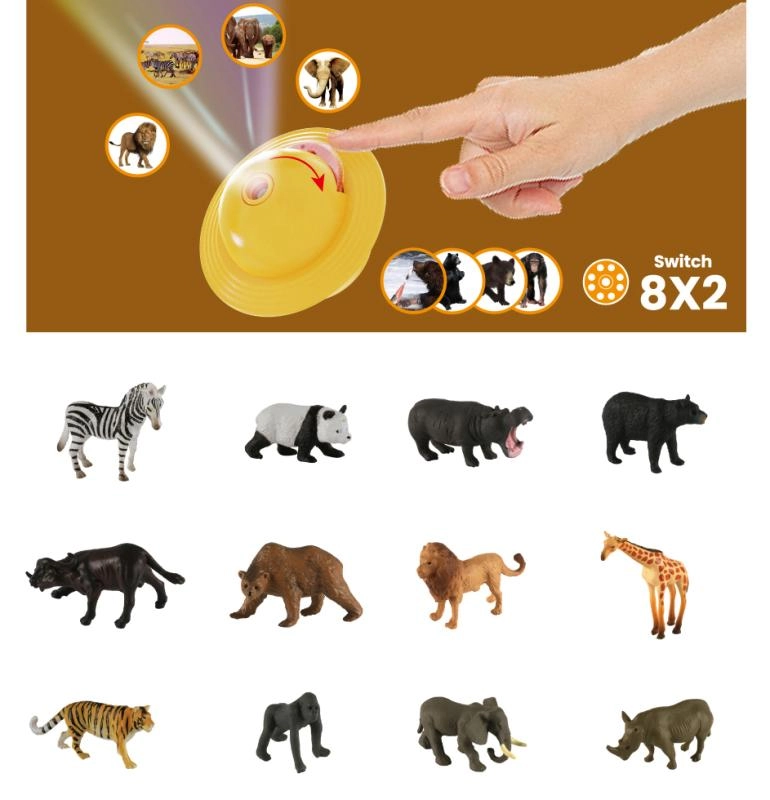 The Plejo Wild Animals with Projector set takes children on an adventurous safari full of a lion, elephant, panda, hippo, and more friends. The projector is designed for easy operation by little hands and projects bright, colorful images onto the wall or ceiling. Also included are small animal figurines that match the projected images—children can compare shapes, colors, and details.