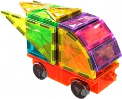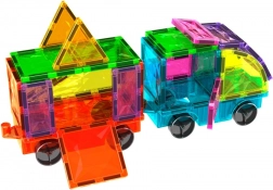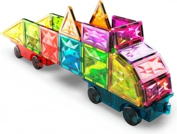 Discover the fun Geomag Magnetic Tiles Cars set, where kids can easily create 2D shapes and 3D vehicles. Pieces with magnets on all sides hold firmly, support creativity, imagination, and fine motor skills, and thanks to the wheel chassis, finished models really roll.