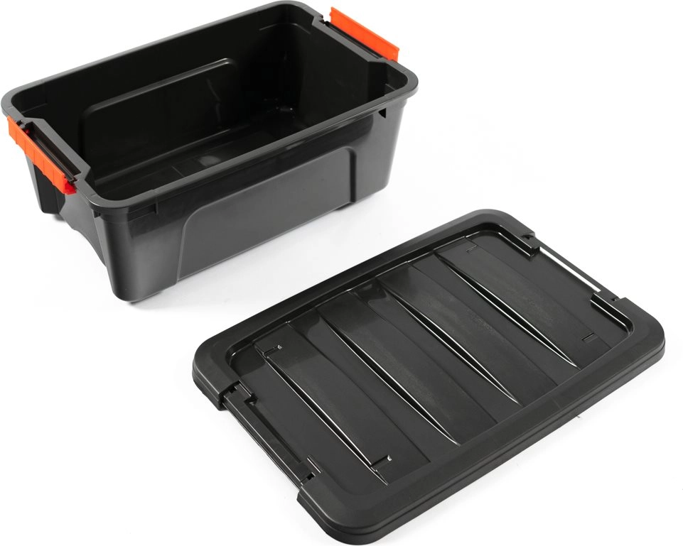 The box is made of durable plastic that withstands everyday use and is easy to maintain. Its clean, functional design fits in wardrobes, shelves, and racks and helps you efficiently organize your space in the apartment, office, or workshop.