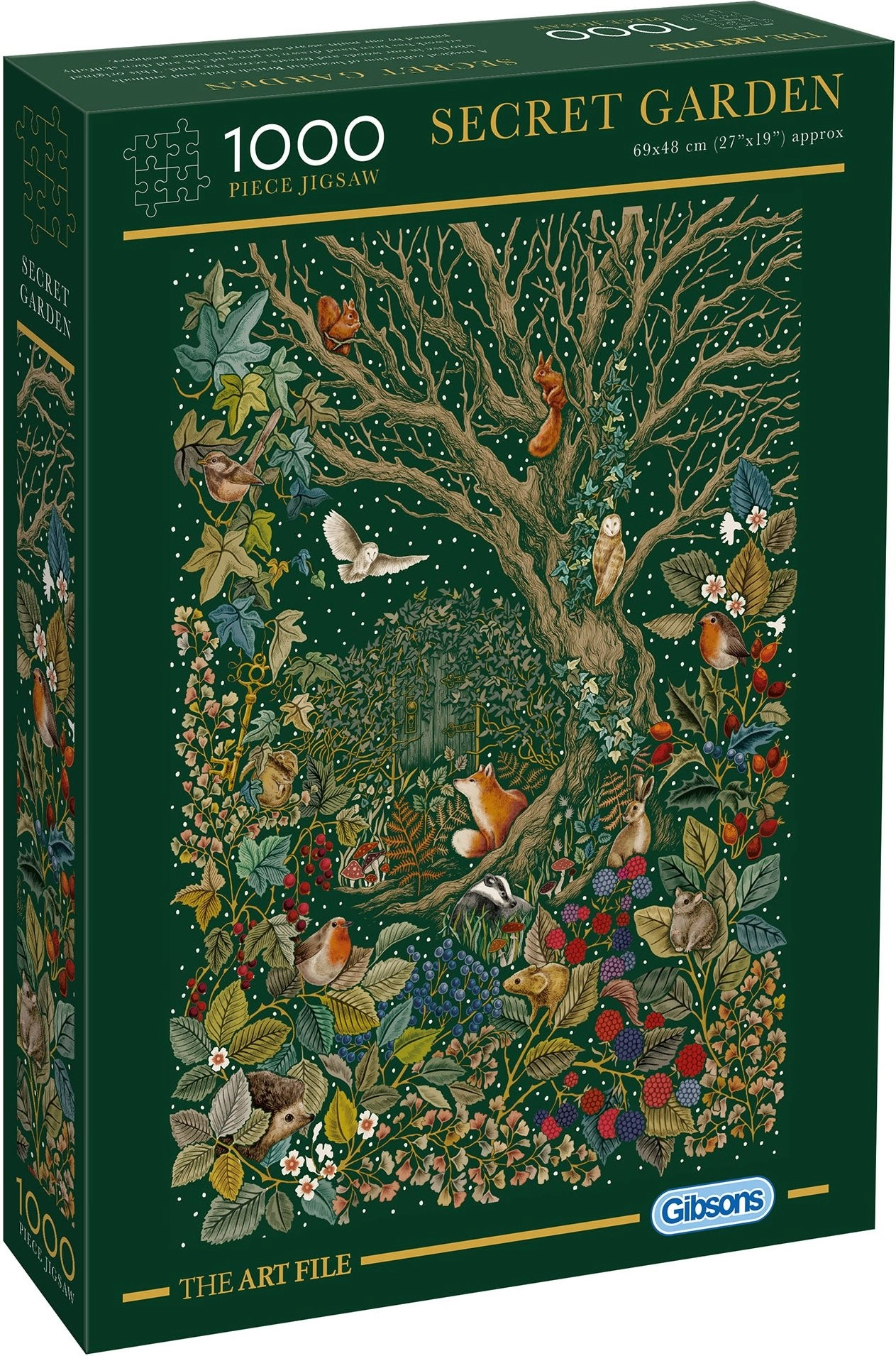 Discover the charm of calm puzzling with GIBSONS The Art File: Secret Garden. Precisely crafted pieces fit together seamlessly to create a harmonious picture full of flowers, leaves, and mysterious corners. The motif is designed to entertain while also providing a pleasant challenge.