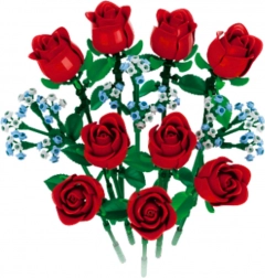 - 649 pieces to build a rose bouquet, illustrated instructions, cardboard packaging