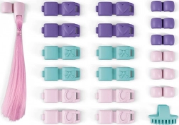 Create gorgeous hairstyles for your horses with the SCHLEICH HORSE CLUB accessory set. The pastel shades – mint, lavender, and light pink – suit mares and stallions of all breeds. Before attaching the accessories, simply thoroughly brush the mane so the clips stay in place even during the wildest jumps. The pink extension adds a final wow effect to the hairstyle.