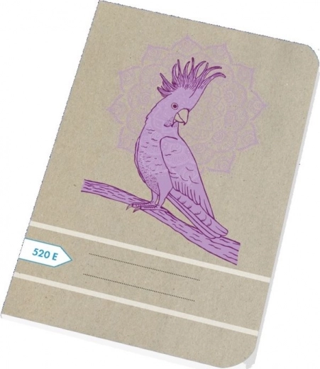 Practical A5 school notebook with plain pages and 20 sheets made from quality recycled paper. Ideal for notes, sketches, and drawings, featuring eco-friendly production and a parrot motif. Recycled paper, plain pages, A5 format, and 20 sheets for everyday use.