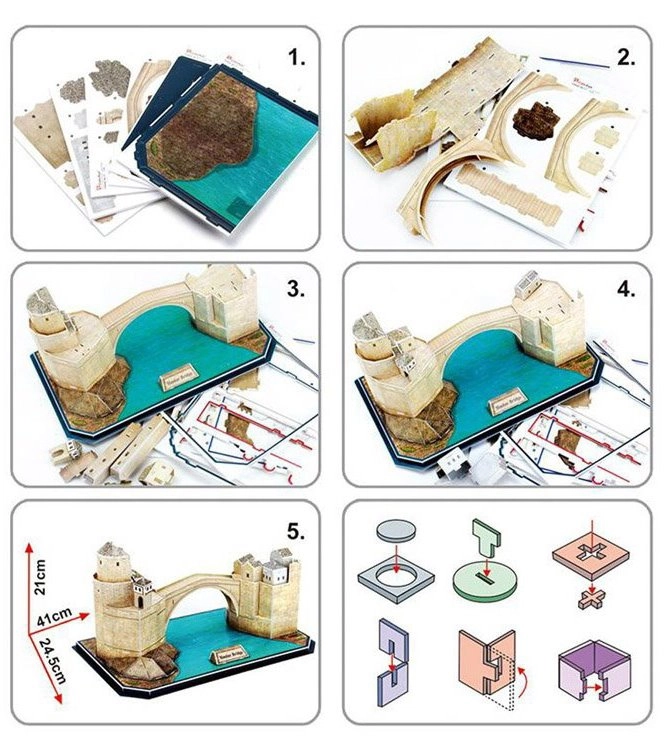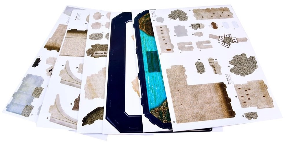 Discover the charm of Bosnia and Herzegovina with a 3D puzzle of the iconic arched bridge in Mostar. The model is made from 3 mm foam covered with laminated printed paper, ensuring durability, a realistic look, and precise fit. The parts are pre-scored and easy to punch out—no glue or scissors required.