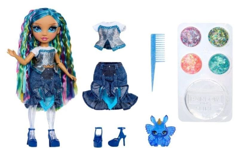 The RAINBOW HIGH Skyler doll brings a whole new way to play – blending fashion, slime, and glitter. Create your own sparkling mix, add it to the doll’s clear legs, and watch the transformation. Filling is fast and simple: remove the back of the legs, insert the slime, snap closed, and start playing right away. Best of all, you can repeat the process again and again.