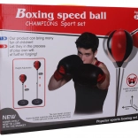 A complete boxing set for home training featuring a height-adjustable speed bag, gloves, mounting kit, and hand pump. Ideal for beginners and recreational athletes. Enjoy a fun and effective workout, improve fitness and coordination thanks to the stable base and easy assembly. Adjustable height 69–109 cm, speed bag diameter 22 cm, stable base 33 × 33 cm.