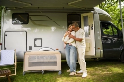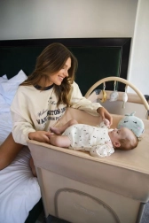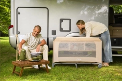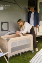 The quick unfold/fold system and the included bag allow effortless transport of the cot – perfect for holidays and visits.