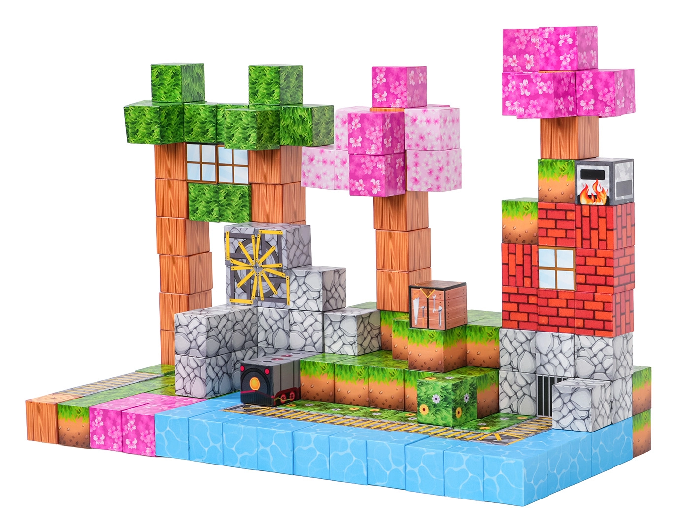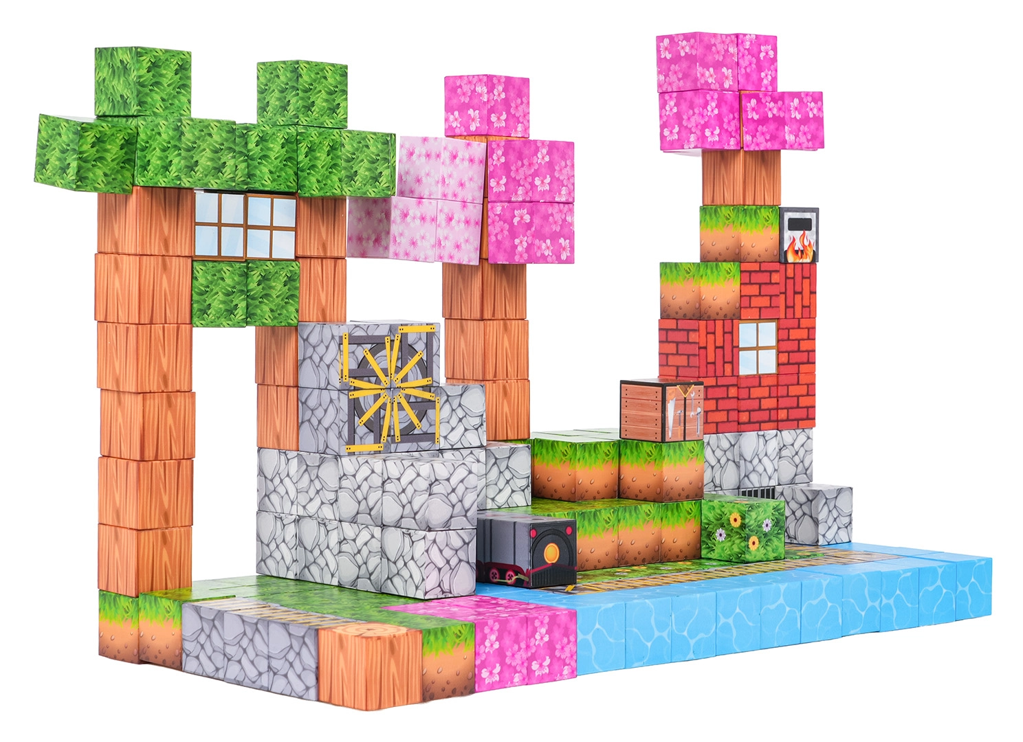 Integrated neodymium magnets provide strong connections between pieces, so even taller and more complex structures remain stable and safe during play.
