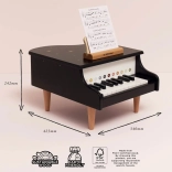 Inspire a love of music with this stylish children's piano made from certified FSC wood. It offers beautiful tones, a stable construction, and an elegant black finish with gold stars. Includes double-sided music sheets with English nursery rhymes and a wooden music stand. Ideal for developing a sense of rhythm and melody, but not a professional instrument.