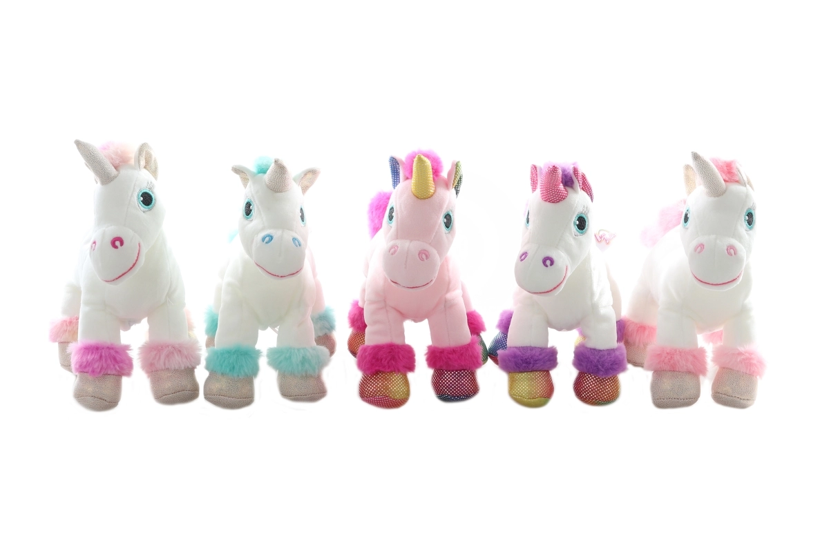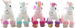 A cute 22 cm plush unicorn delights children with its soft design and magical sounds. When pressed, it plays unicorn and trotting sounds, is super soft for cuddling, and ready for play from age 0+.