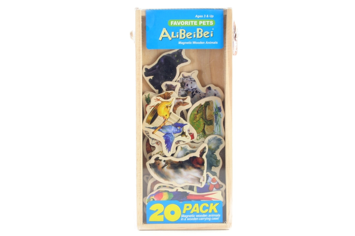 This set of wooden magnets with pet motifs will delight all little explorers. The package contains 20 sturdy magnets with a smooth finish and vivid colors that stick well to magnetic boards, refrigerators, or other metal surfaces. The practical wooden box with a transparent lid and handle makes carrying and storage easy.