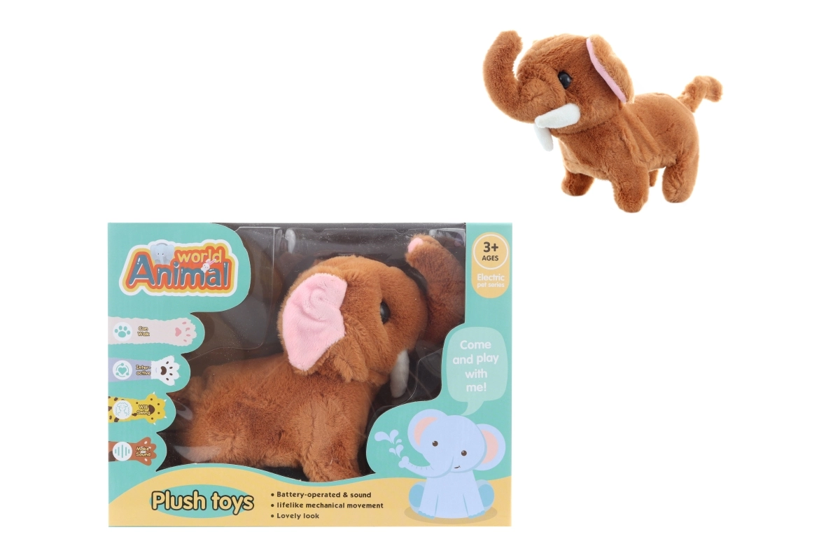 A cute walking elephant for children from 3 years brings lots of fun. After inserting 2 AA batteries, it starts moving and makes authentic trumpeting sounds. The combination of plastic and plush is durable yet pleasant to the touch. Walking, elephant sounds and easy battery operation will delight every little animal lover.