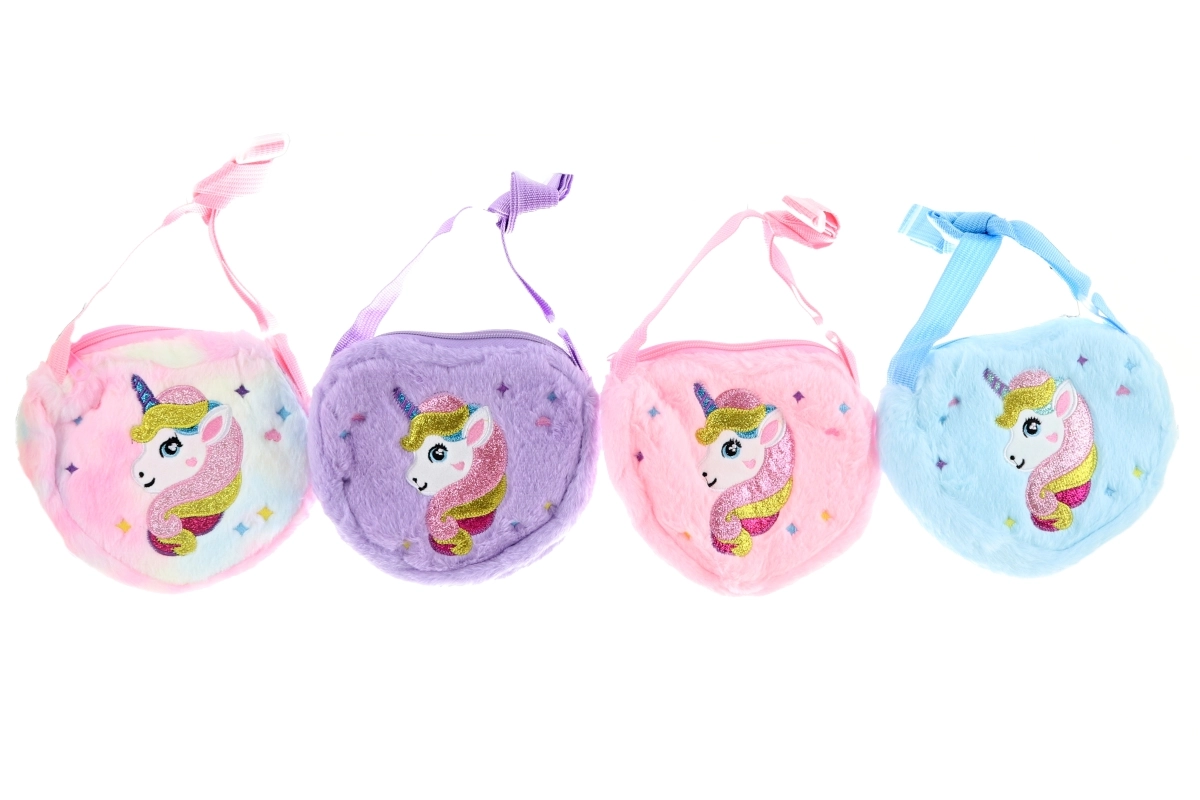 A cute plush crossbody purse with a unicorn motif will delight every little fashion lover. Thanks to the soft furry material, adjustable strap, and practical zipper, it’s ideal for small essentials, toys, or a snack. Available in multiple colors depending on stock availability.