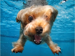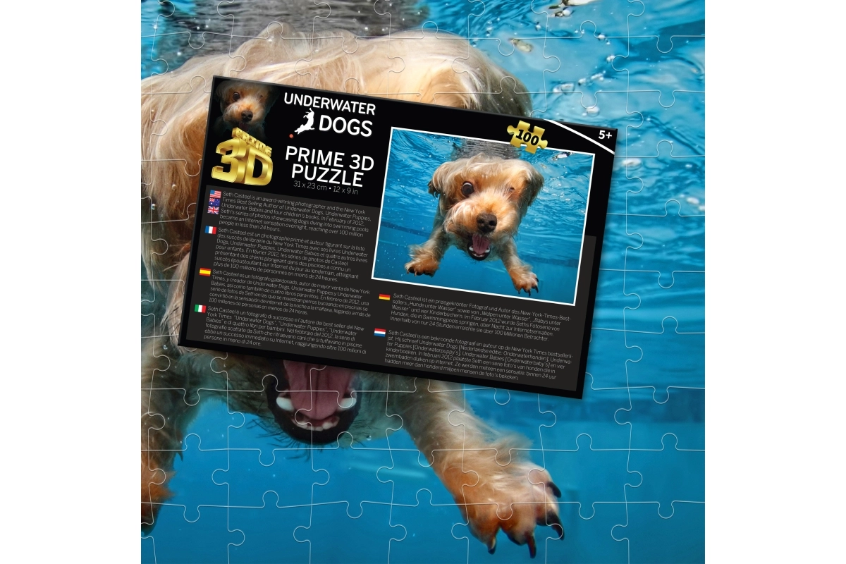 Lenticular printing creates impressive depth and motion — the underwater dog looks as if it’s jumping out of the picture.