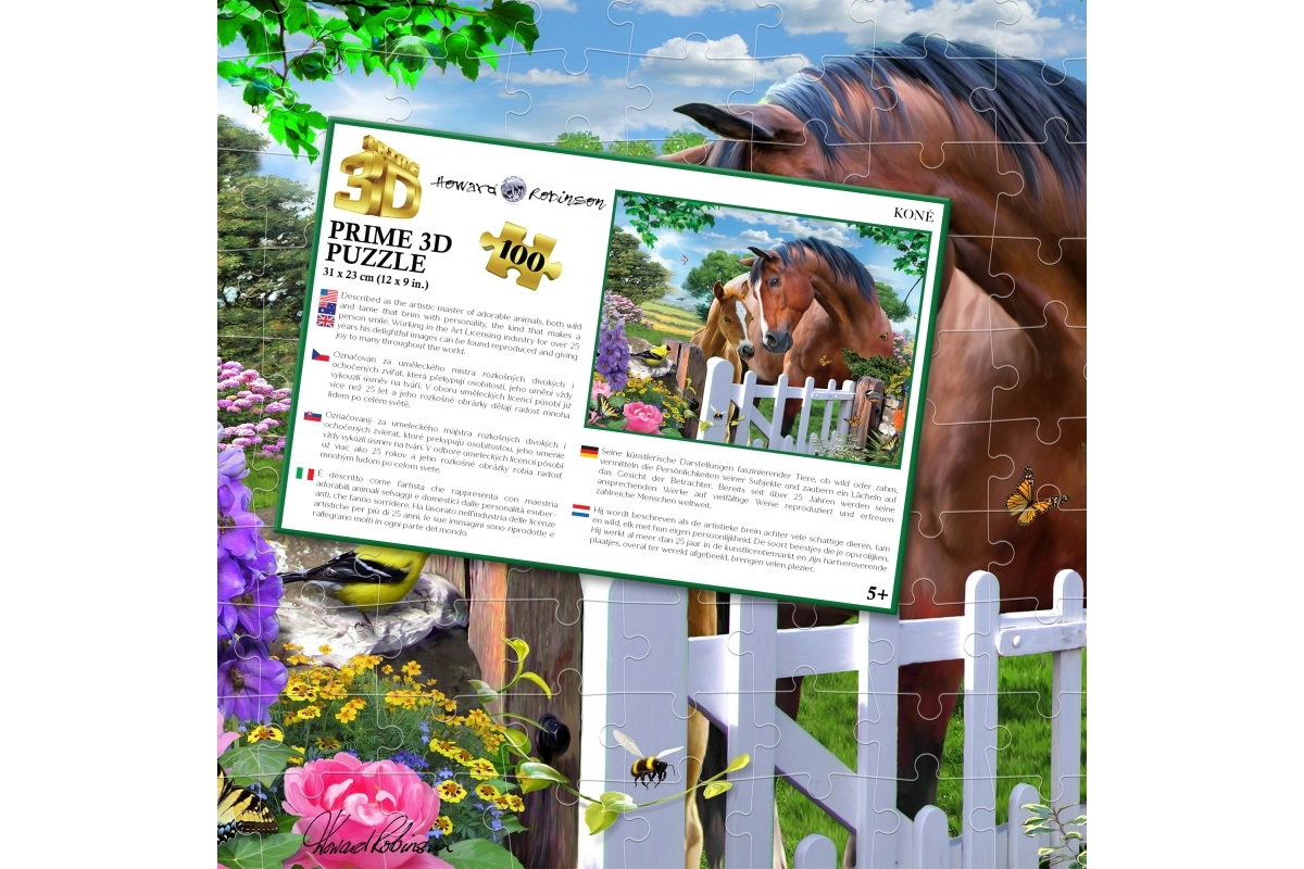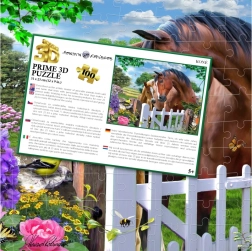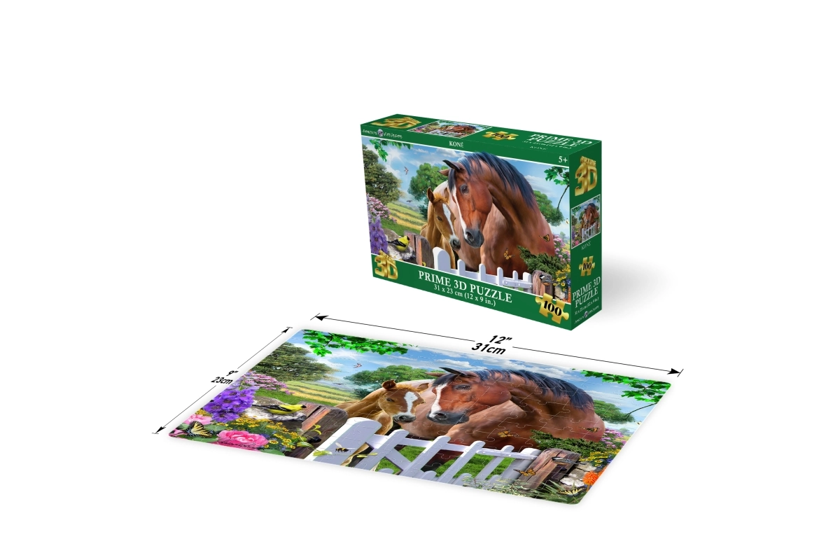 Discover the fun 3D puzzle with a horse motif, delighting kids and adults with its beautiful illustration and pleasant level of difficulty. The set includes 100 pieces, ideal for ages 5+. Once completed, it forms an impressive picture measuring 31 × 23 cm. The practical packaging 23 × 15 × 5 cm is great for home and travel.