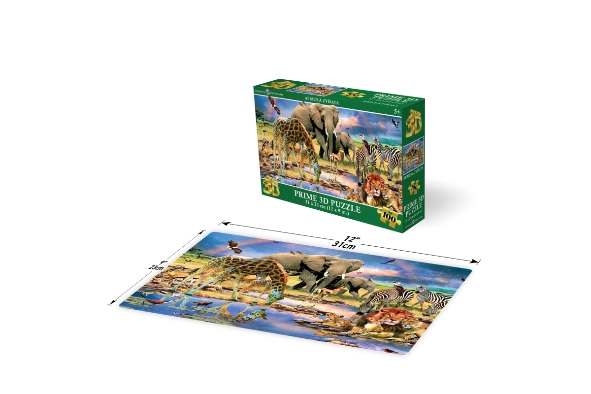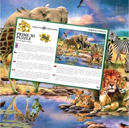 Discover fun and learning with this 3D puzzle featuring African animals. The set includes 100 pieces that assemble into an impressive image measuring 31 × 23 cm. Ideal for children ages 5 and up, perfect for developing fine motor skills, patience, and spatial imagination.