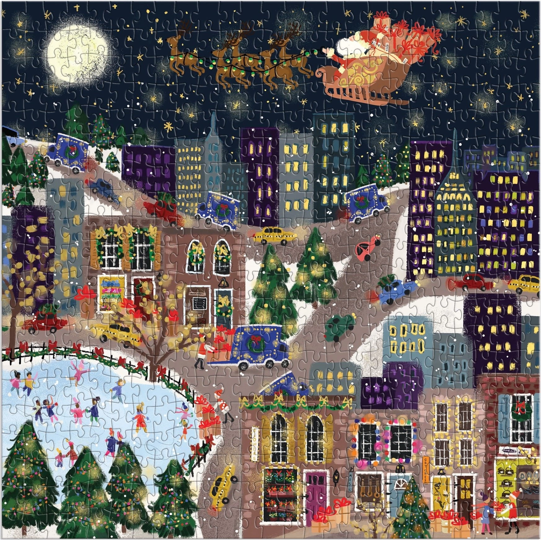 Discover the joy of puzzling with elegant square puzzles from GALISON. This Gift Town design with metallic effects adds flair to the experience and becomes a stylish decoration once completed. The box also includes a reference poster for easier assembly and a finished image measuring 50.8 × 50.8 cm.