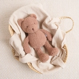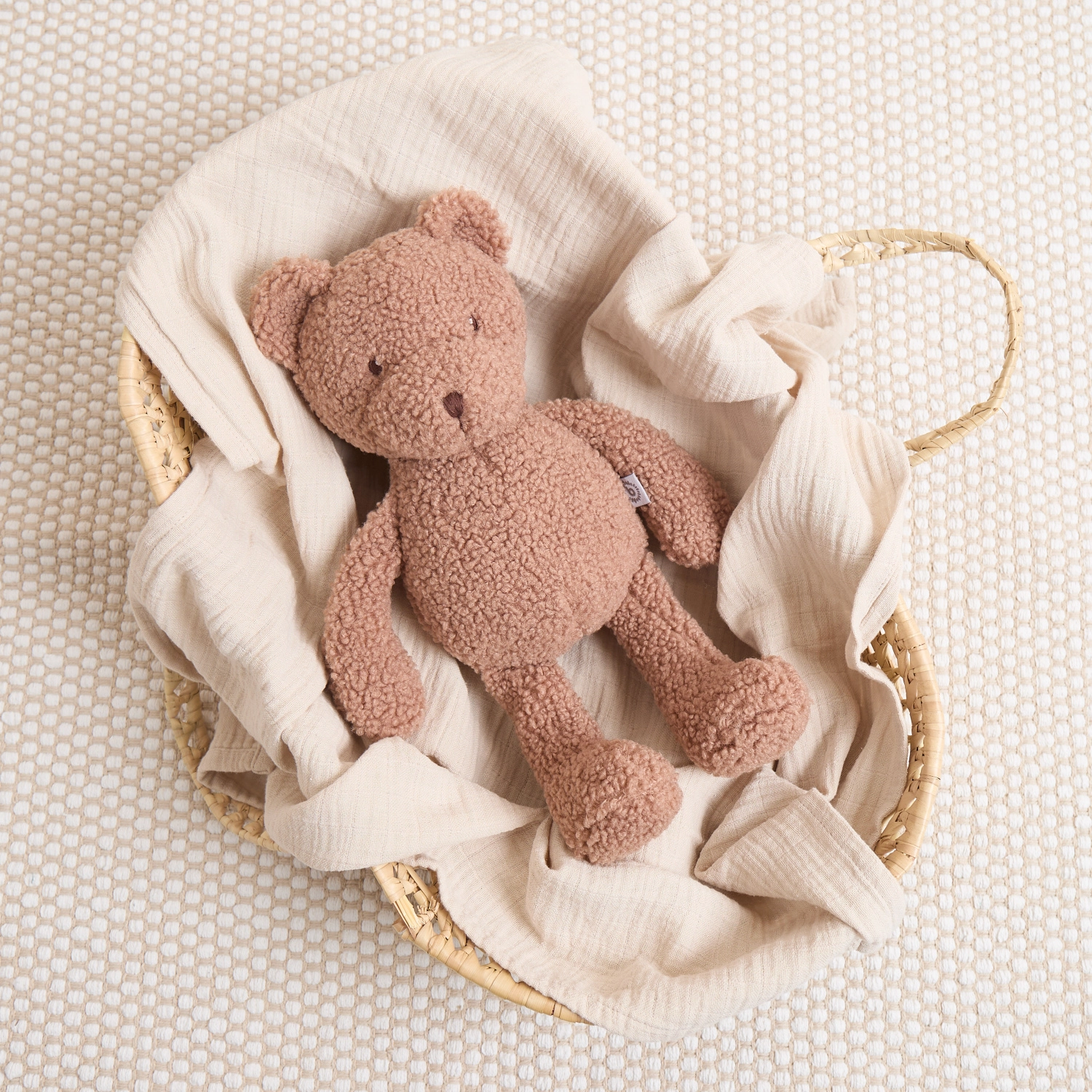 The adorable plush teddy bear Mika from Bieco is a soft cuddle buddy made from fluffy bouclé fabric in a warm chocolate shade. It is super soft, perfect for cuddling and hugging, and also serves as a comfy little pillow. Thanks to the loose arms and legs, it’s easy for children to hold and won’t get in the way during sleep or play. Suitable from 0 months, tested according to EN 71 and independently checked for harmful substances.