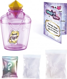 The So Slime Magic Elixir set brings playful alchemy to kids – in a few steps they mix their own colorful, shiny slime. The box includes a themed bottle (Secret Elixir, Mystery Potion, or Magical Potion), slime powder blends, glitter or confetti, and a clear guide. The result is a soft, stretchy, and visually striking slime with cute hearts, stars, or diamond accents.