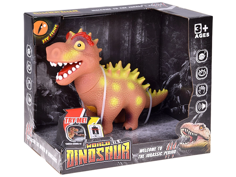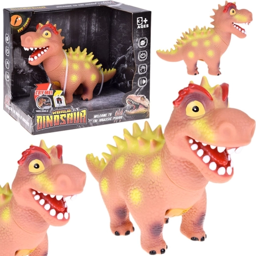 Discover a fun dinosaur figure with sound effects that inspires hours of creative play. The body is made of firm rubber with a detailed texture reminiscent of dinosaur skin; prominent teeth and dorsal spikes enhance the realistic look. Just stroke the dinosaur under the chin to hear a powerful roar.