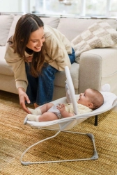 The MoMi Glossy bouncer is designed for everyday comfort and soothing. The integrated sensory module provides 8 melodies with volume control and 3 vibration levels to gently calm your baby. Soft padding and an ergonomic shape provide support and comfort for both rest and play.