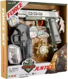 Playing sheriff has never been more fun! This plastic pistol with accessories is ideal for all young adventure lovers and imaginative play. The pistol makes sounds and lights up, enhancing the gaming experience.