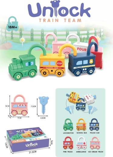 This logical sensory game with keys and locks brings children the joy of discovery. The task is to correctly match the key to the corresponding lock on cute little cars. Thanks to its simple principle and vivid colors, the game is suitable even for toddlers and supports the development of shape, color, and pattern recognition.