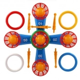 This fun game is ideal for the youngest children. It includes a cross with five pegs where children throw colorful plastic rings for the purpose of scoring points. Each successful throw landing a ring on a peg earns points, encouraging competitiveness and precision. The second variant of the game works on the same principle, but the pegs are replaced by baskets for balls, bringing a new challenge.